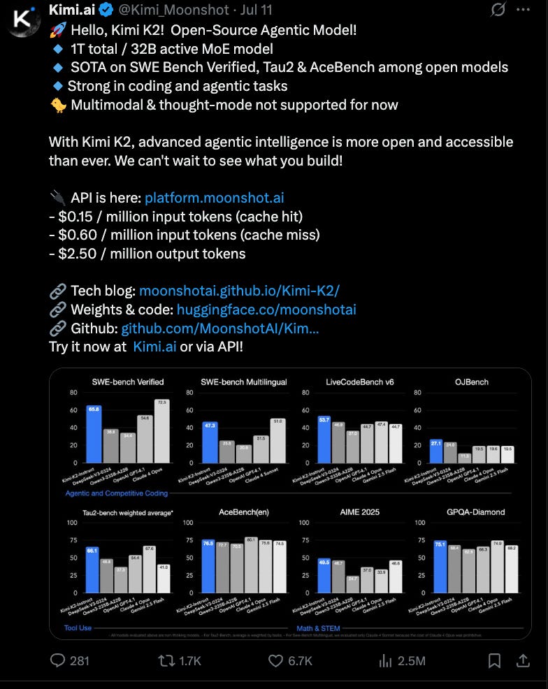 First came Moonshot’s Kimi 2 - a 400B+ parameter Mixture of Experts model with up to 2 million tokens of context in proprietary deployments (128K in the open release), trained from scratch and fine-tuned for long-document reasoning. It shot to the top of HuggingFace’s leaderboard, outperforming Meta’s LLaMA 3 70B and Elon’s Grok-1.