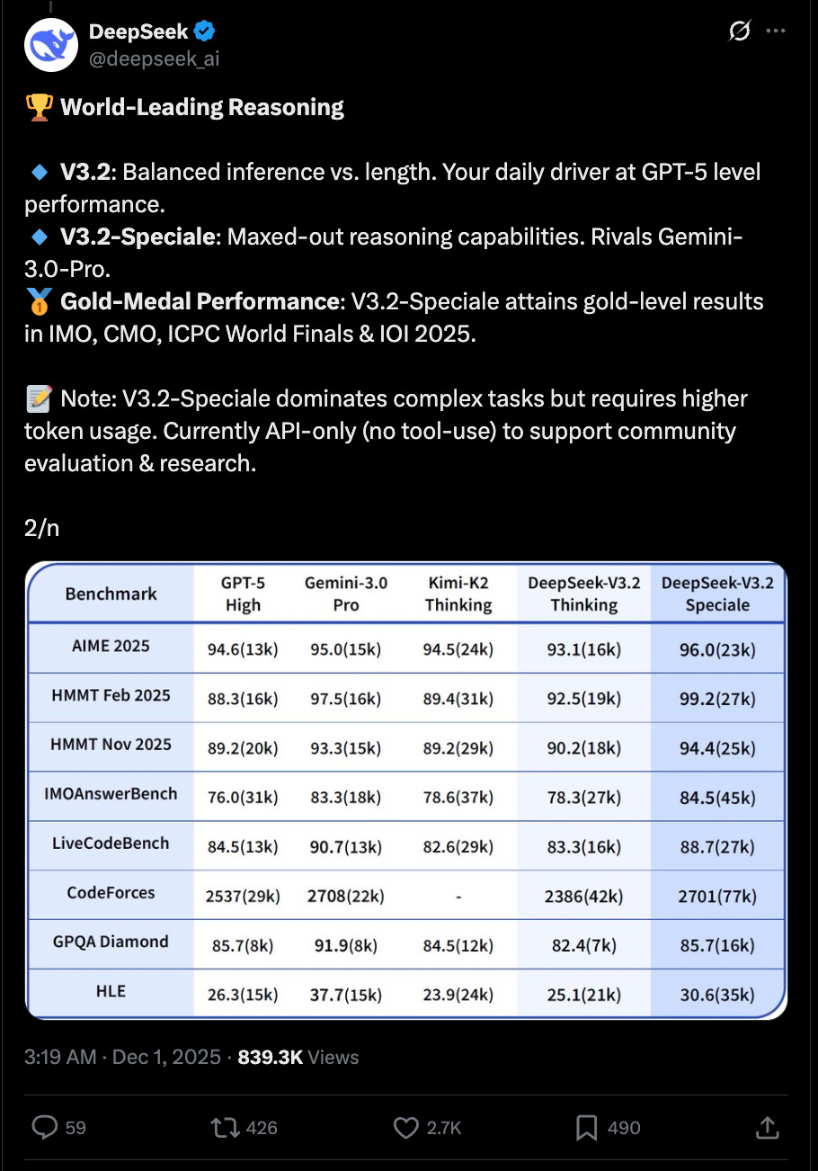 Now, months later, V3.2 bookends the year with an even louder message: open-source is no longer trailing by quarters, it’s operating on a near-synchronous innovation clock. And in some benchmarks, it’s outright leading.