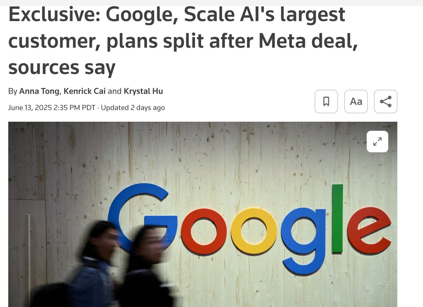 When the rumors broke, I predicted Scale’s largest customers - other foundation model labs like Google and Anthropic - would stop doing business with them. And it’s already beginning: